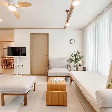 Descubra o que outros hóspedes dizem sobre New Open 홍대 망원시장 한강 숙소,단독주택 1층- 최대9인, 2층-최대6인 가능, 호텔침구, 무료짐보관, 세탁기건조기!
